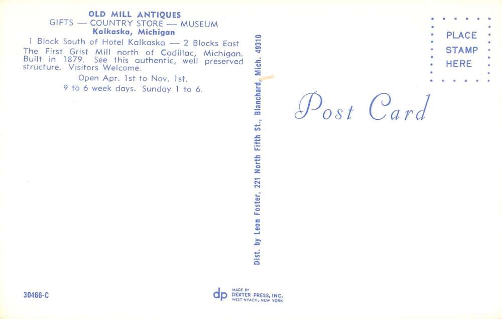 Kalkaska Michigan Old Mill Antiques Street View Vintage Postcard K37149