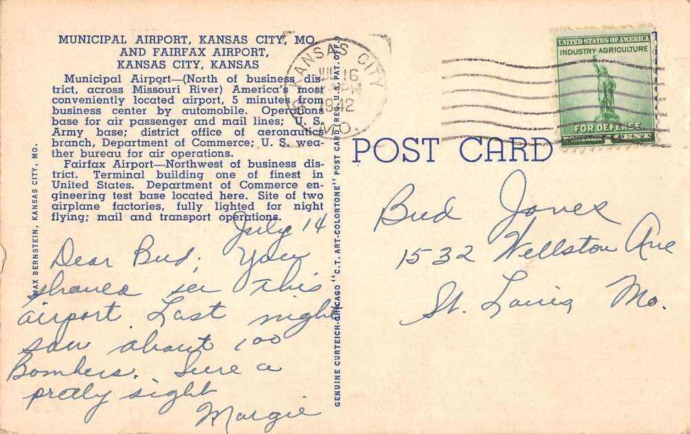 Kansas City Missouri Municipal Airport Multiview Linen Antique Postcard K21769