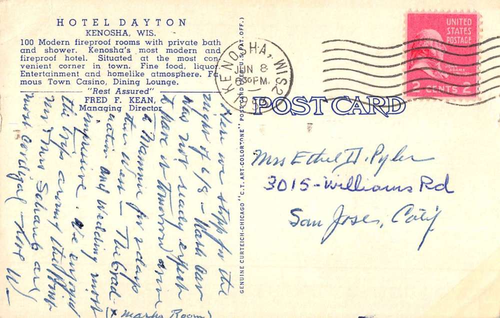 Kenosha Wisconsin Hotel Dayton Multiview Antique Postcard K56697