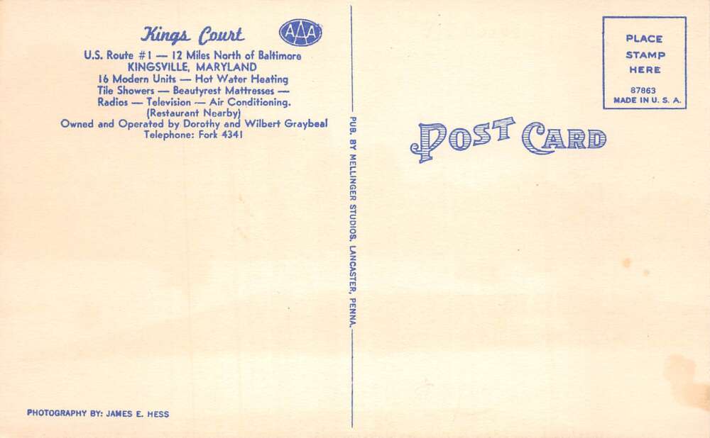 Kingsville Maryland Kings Court Linen Vintage Postcard AA105895