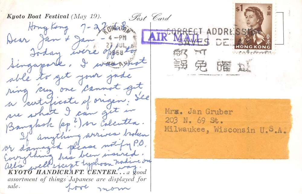 Kyoto Japan Boat Festival Scene Hong Kong Postal Used Vintage Postcard AA95962