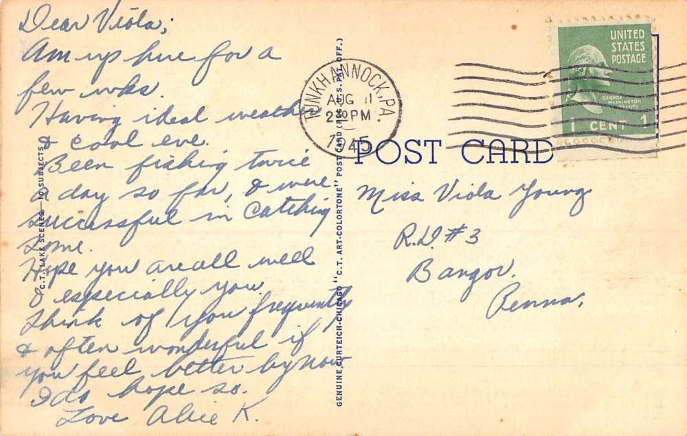 Lake Carey Pennsylvania Sunset Waterfront Greeting Antique Postcard K86252
