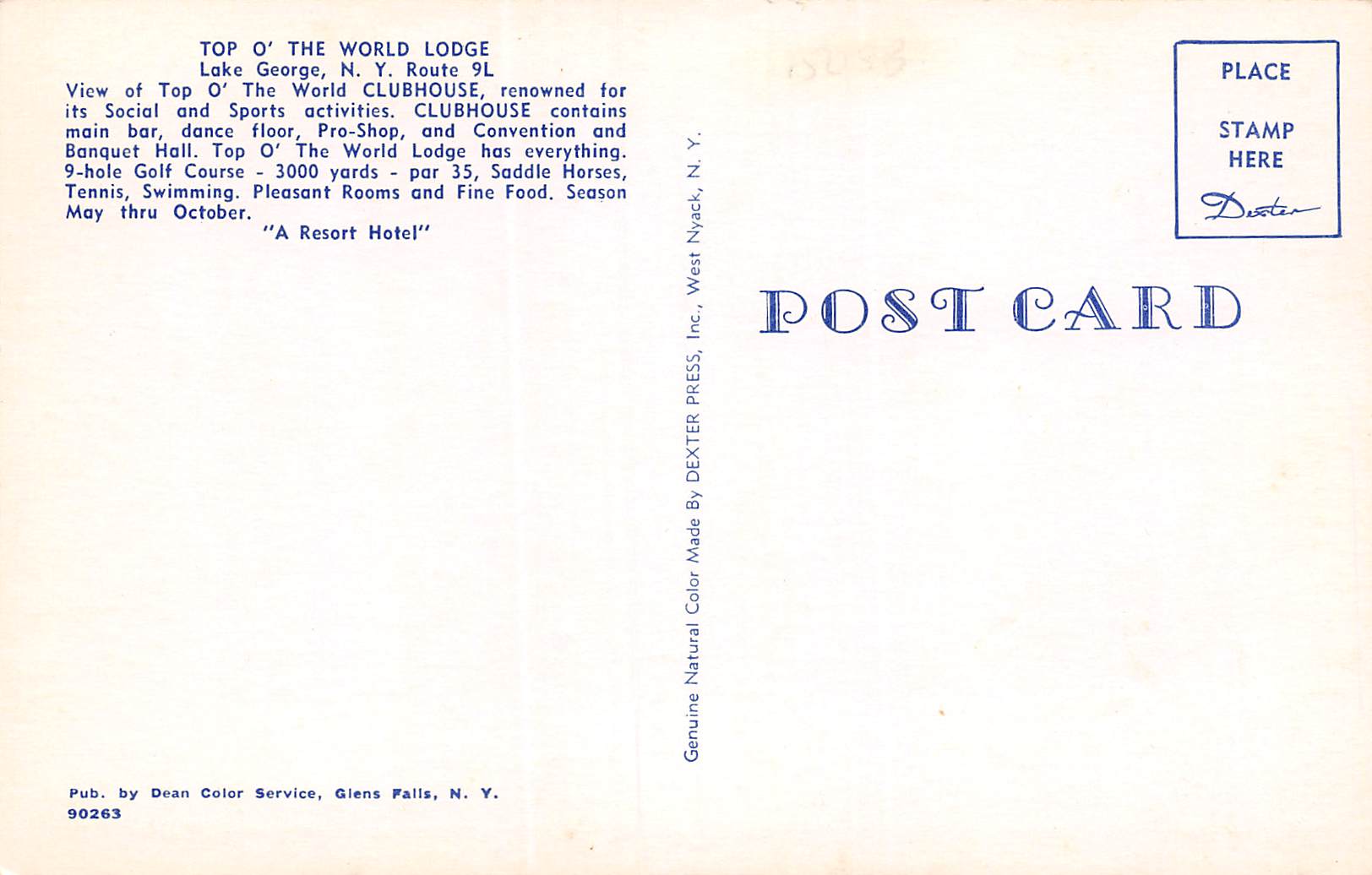 Lake George New York Top O’ The World Lodge, Photochrome Vintage Postcard U11960