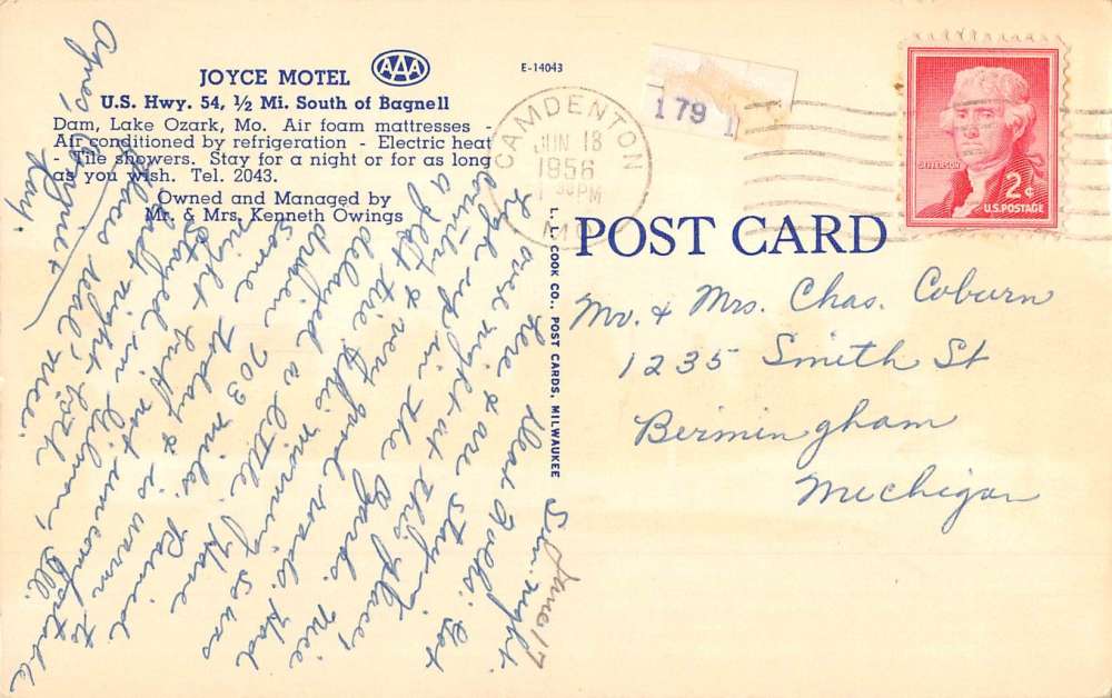 Lake Ozark Missouri Joyce Motel Multiview Antique Postcard K54738