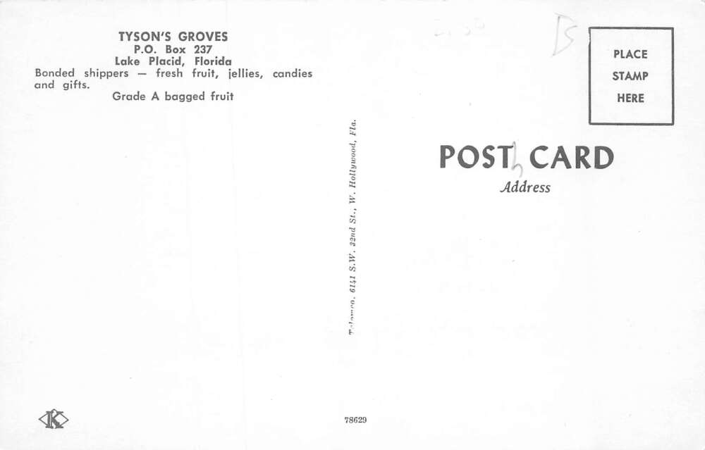 Lake Placid Florida Tyson’s Groves, Fruit Shop Chrome Vintage Postcard U6767