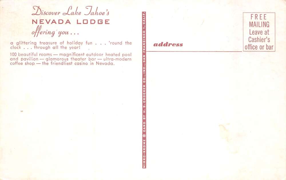 Lake Tahoe Nevada Nevada Lodge Casino Roulette Wheel Vintage Postcard AA98671