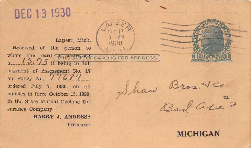Lapeer Michigan Cyclone Insurance Ad Building Ruins Disaster Postcard AA1100918