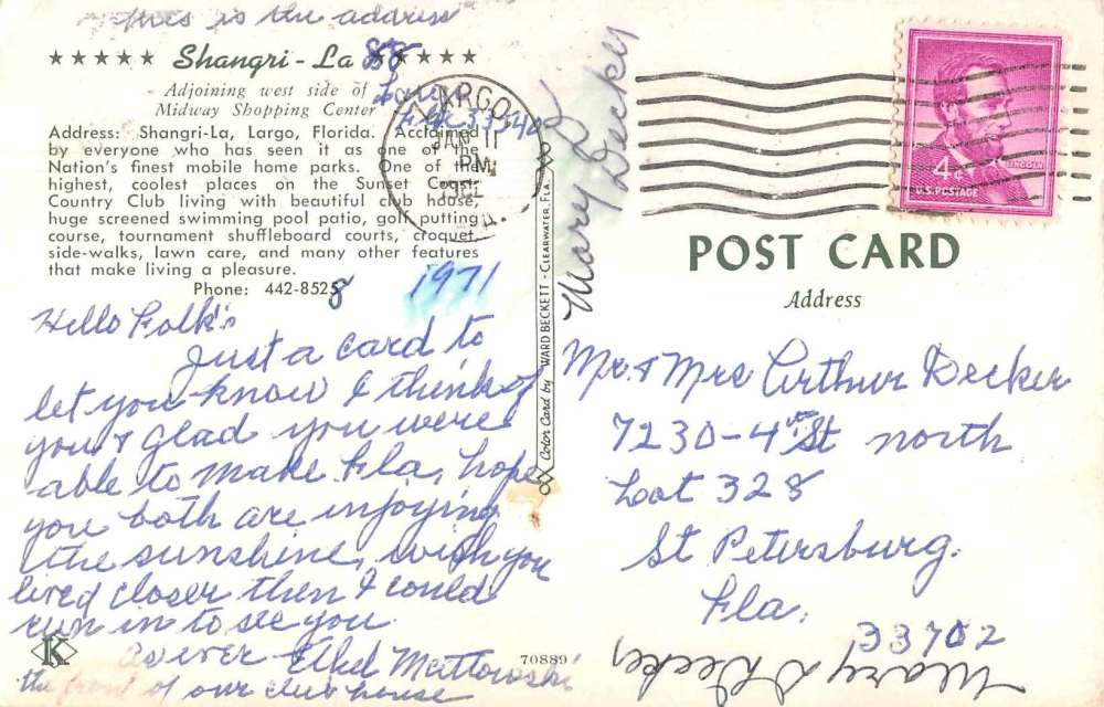 Largo Florida Shangri La Mobile Home Park Vintage Postcard JE359518
