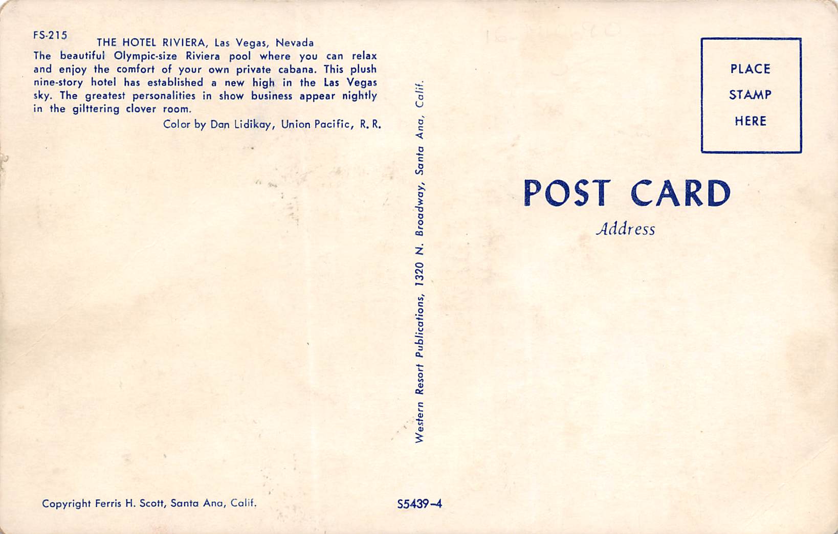 Las Vegas Nevada Hotel Riviera, Swimming Pool, Chrome Vintage Postcard U13030