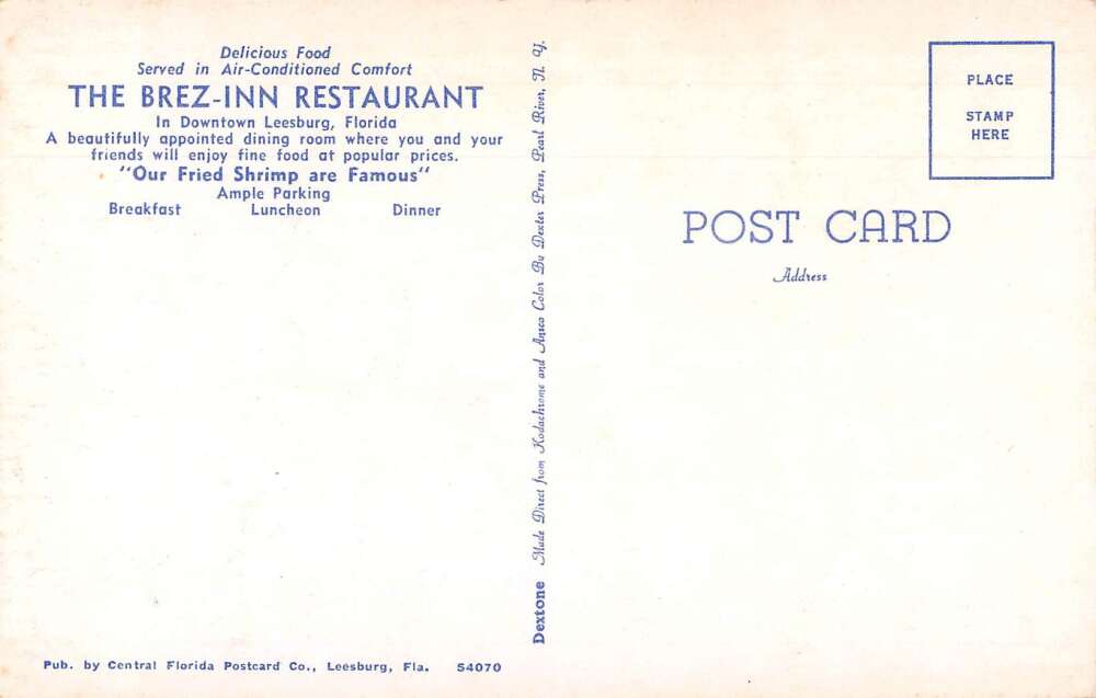 Leesburg Florida Brez-Inn Restaurant Dining Room Vintage Postcard AA31214