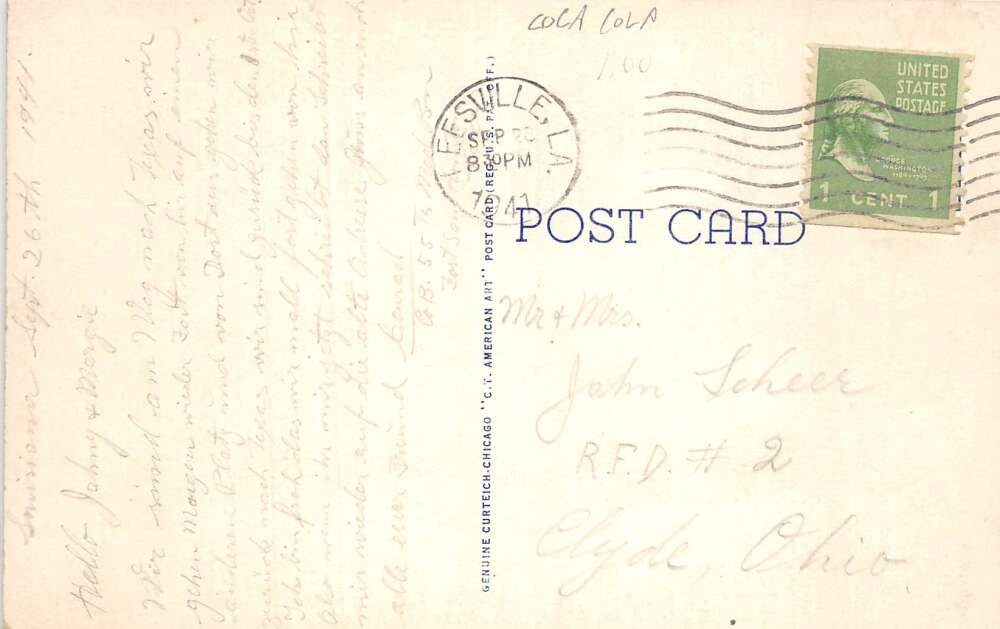 Leesville Louisiana Business District Street Scene Coke Sign Postcard AA108686
