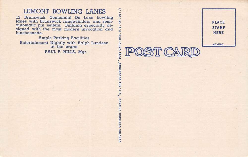 Lemont Illinois Lemont Bowling Lanes, Multi-View Linen Vintage Postcard U11120