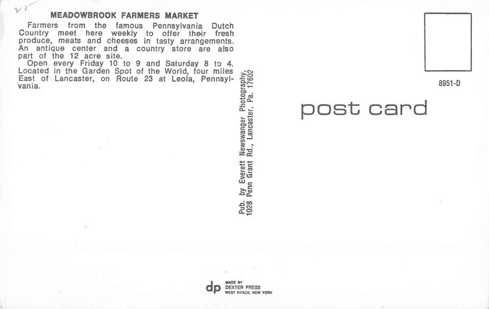 Leola Pennsylvania Meadowbrook Farmers Market Vintage Postcard K70798