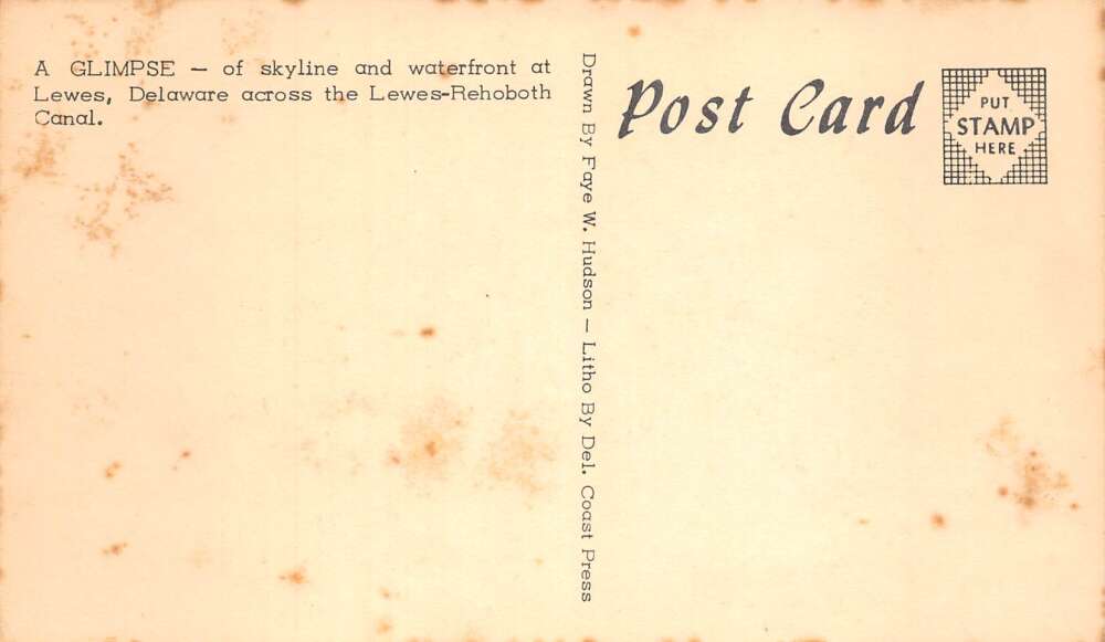 Lewes Deleware Waterfront from Canal Faye Hudson Artist Signed Postcard AA112853