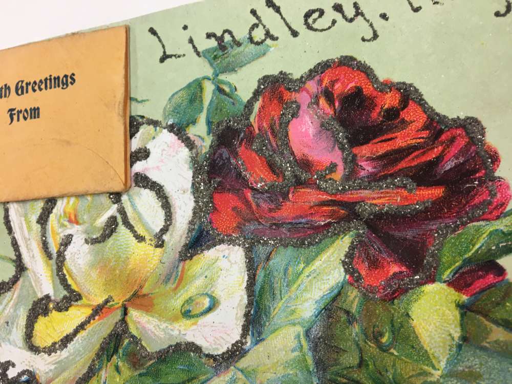 Lindley New York Glitter Flower Pocket Message Antique Postcard K63378