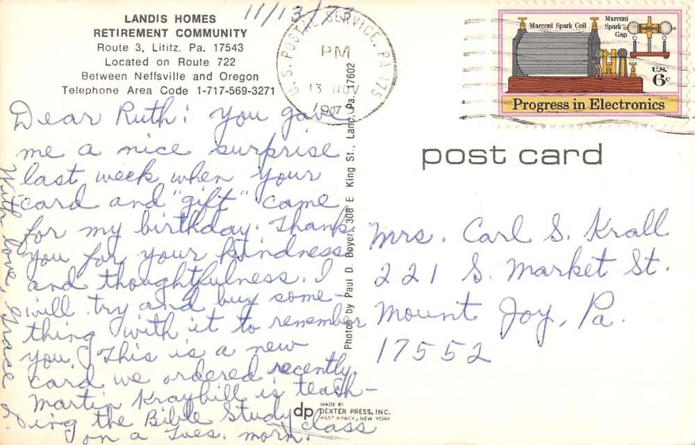 Lititz Pennsylvania Landis Homes Retirement Community Vintage Postcard K67325