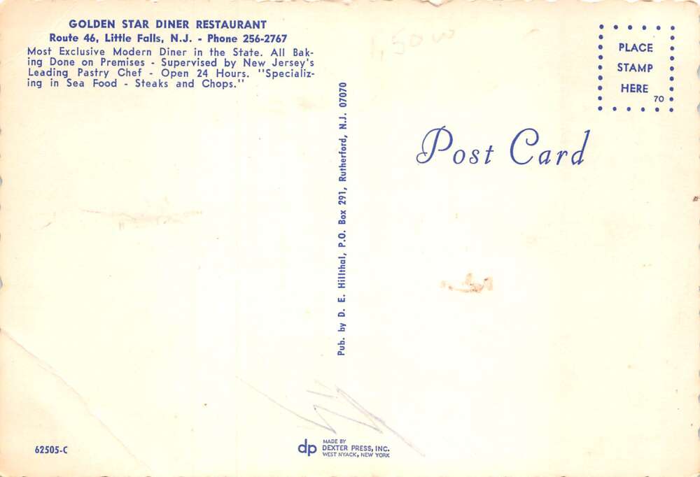 Little Falls New Jersey Golden Star Diner Restaurant Vintage Postcard AA74392