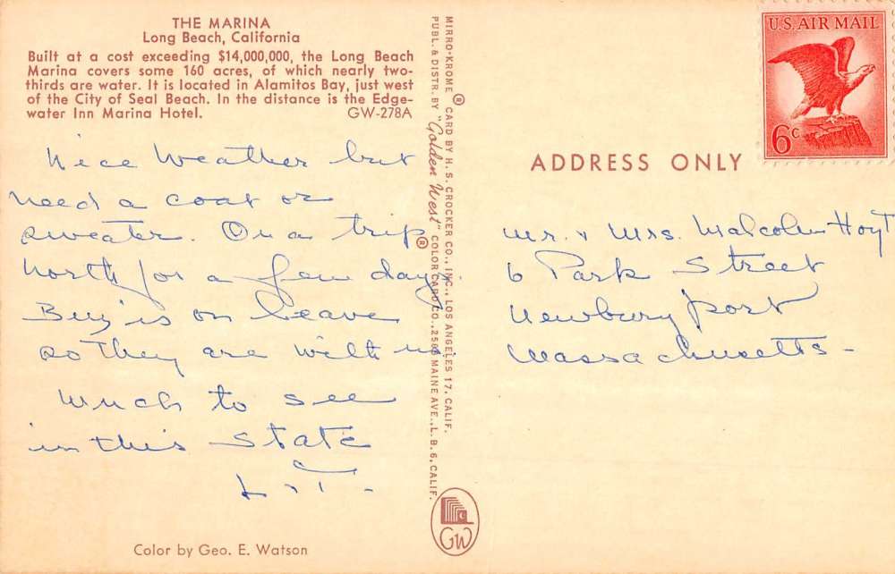 Long Beach California Marina Birdseye View Vintage Postcard K78762