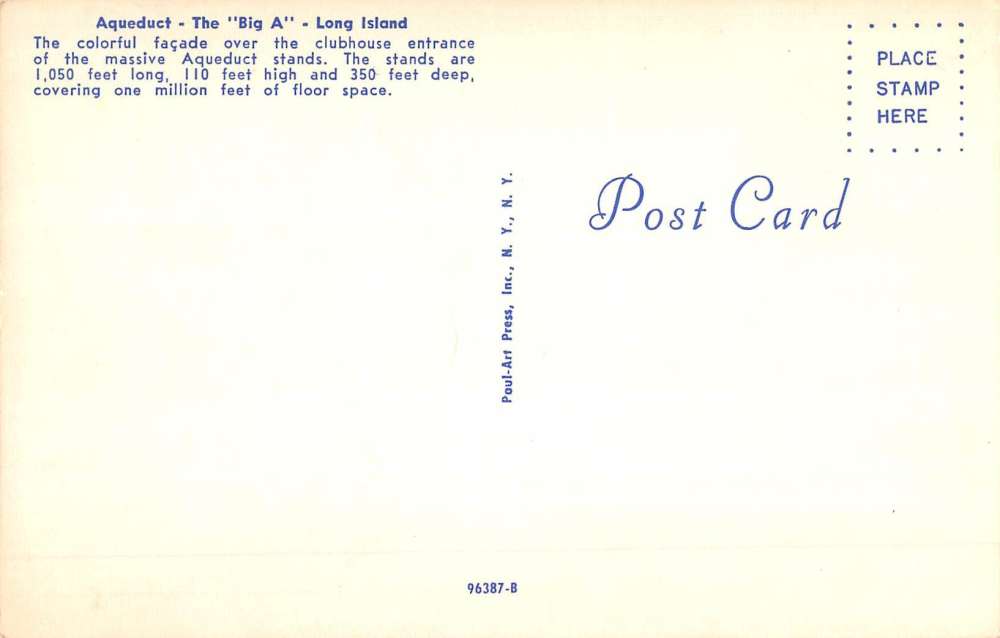 Long Island New York Aqueduct Big A Street View Vintage Postcard K61773