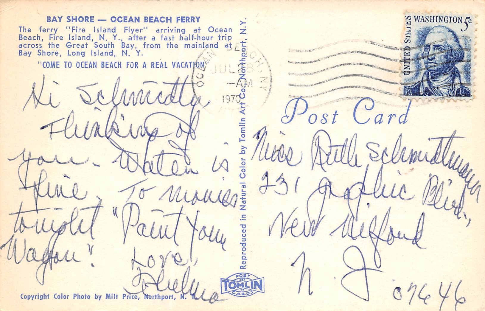 Long Island New York Ocean Beach Ferry, Fire Island Vintage Postcard U11974