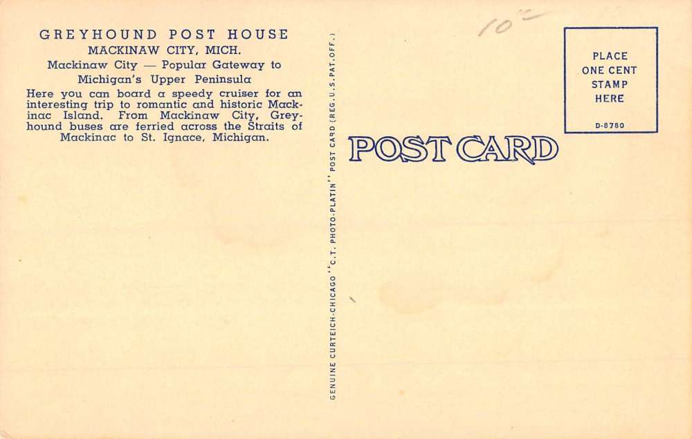 Mackinaw City Michigan Greyhound Post House Street View Antique Postcard K84542