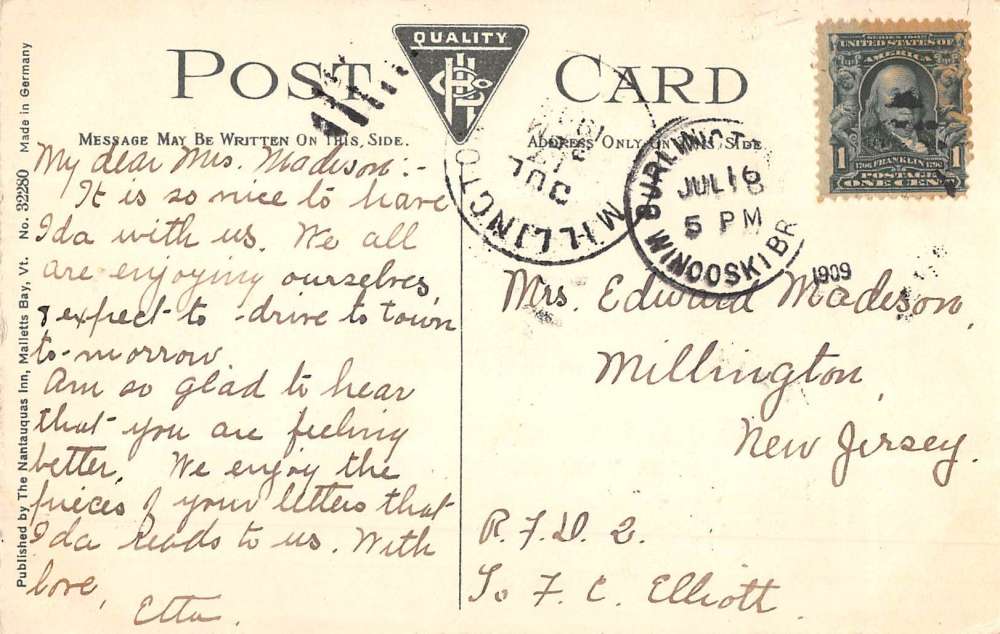 Malletts Bay Vermont Camp Champlain Nantauquas Inn Antique Postcard K67459