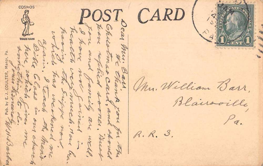 Manor Pennsylvania First Methodist Episcopal Church Antique Postcard J74653