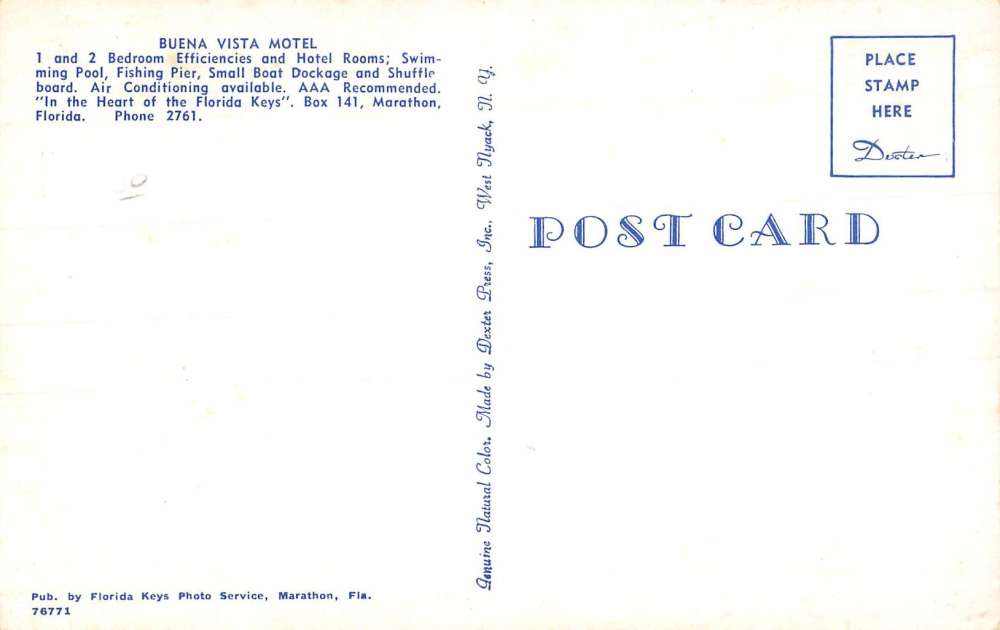 Marathon Florida courtyard and beach Buena Vista Motel vintage pc BB2687