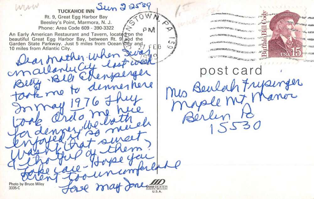 Marmora New Jersey Tuckahoe Inn Street View Vintage Postcard K59471