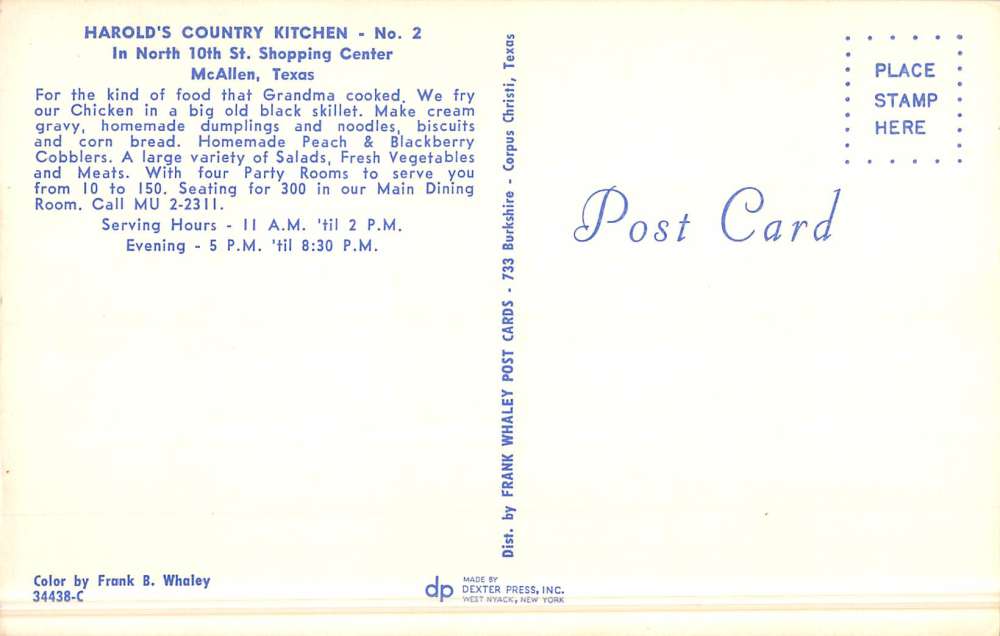 McAllen Texas Harolds Country Kitchen Multiview Vintage Postcard K48859