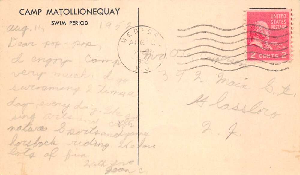 Medford New Jersey Camp Matollionequay Swimming Vintage Postcard AA112443
