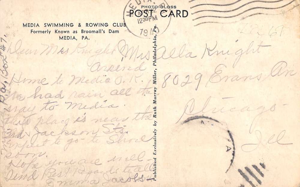 Media Pennsylvania Swimming And Row Club Lake House Antique Postcard K11372