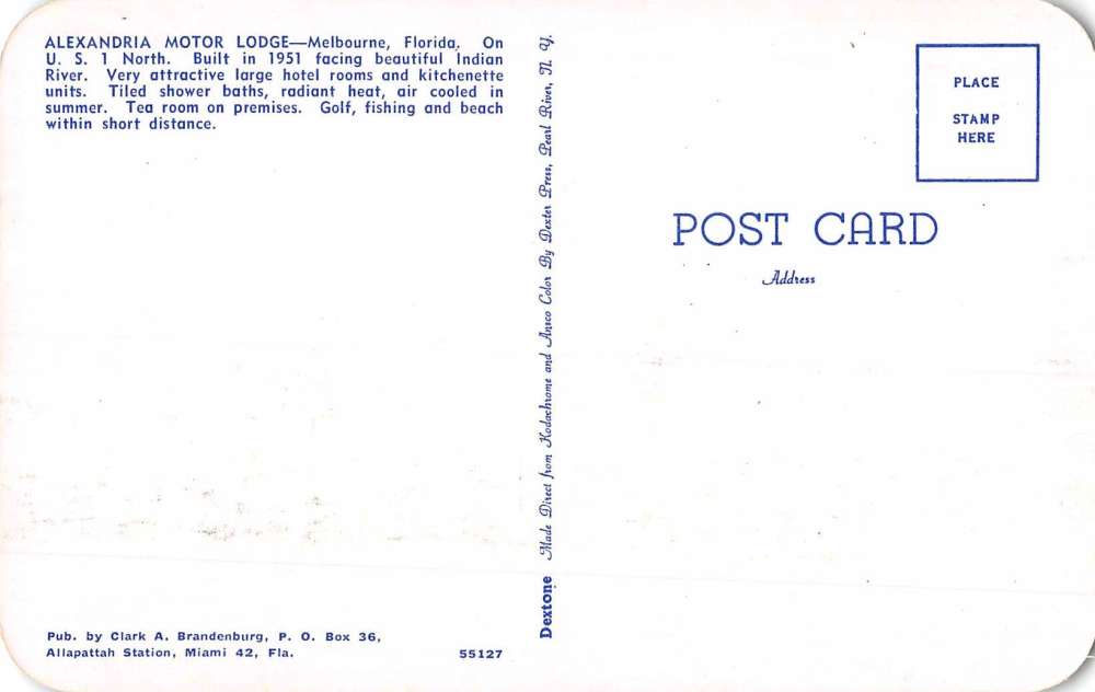 Melbourne Florida Alexandria Motor Lodge Street View Vintage Postcard K84665