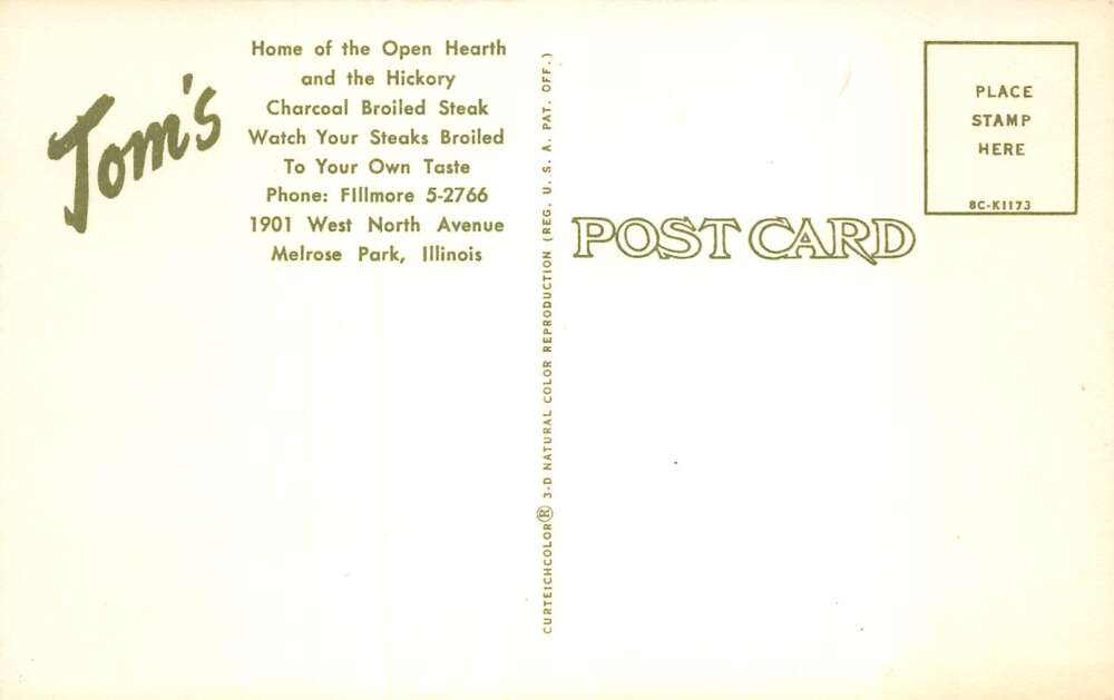 Melrose Park Illinois Tom’s Restaurant Vintage Postcard AA79274