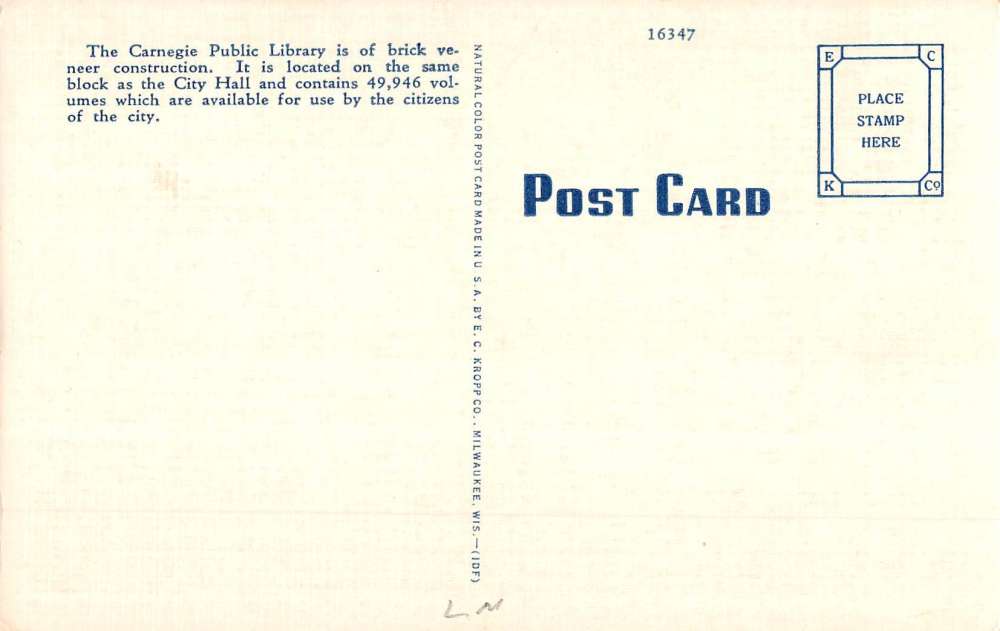 Meridian Mississippi Carnegie Public Library Street View Antique Postcard K69180