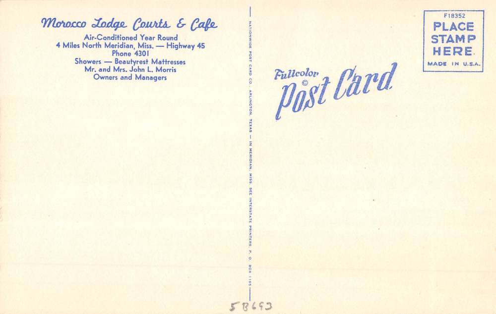 Meridian Mississippi Morocco Lodge Street View Antique Postcard K69178