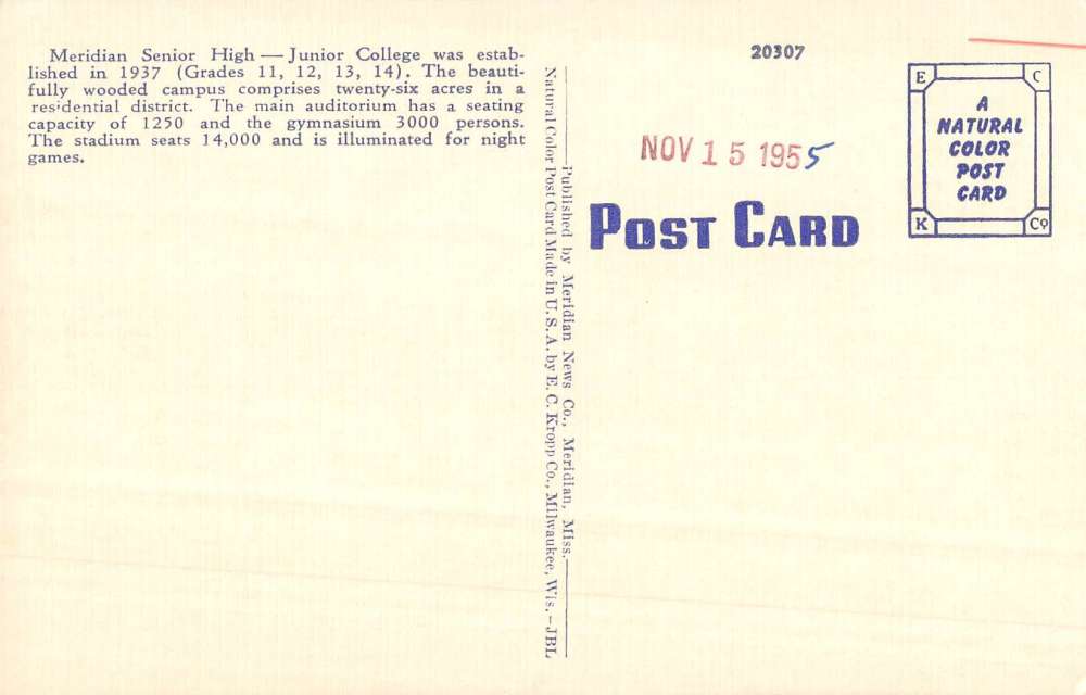 Meridian Mississippi New Senior High Junior College Antique Postcard K72847
