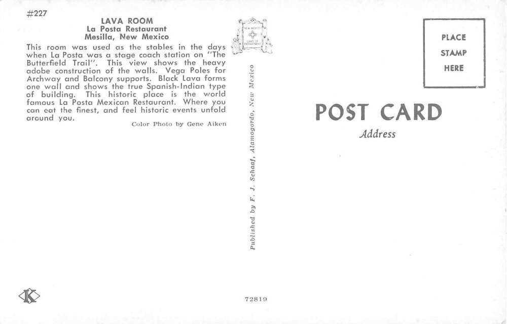 Mesila New Mexico La Posta Restaurant Lava Room Vintage Postcard J54884