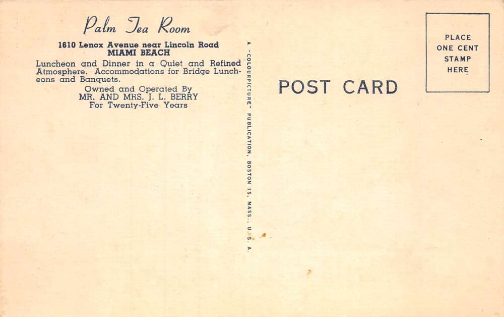 Miami Beach Florida Palm Tea Room Interior Vintage Postcard AA71785