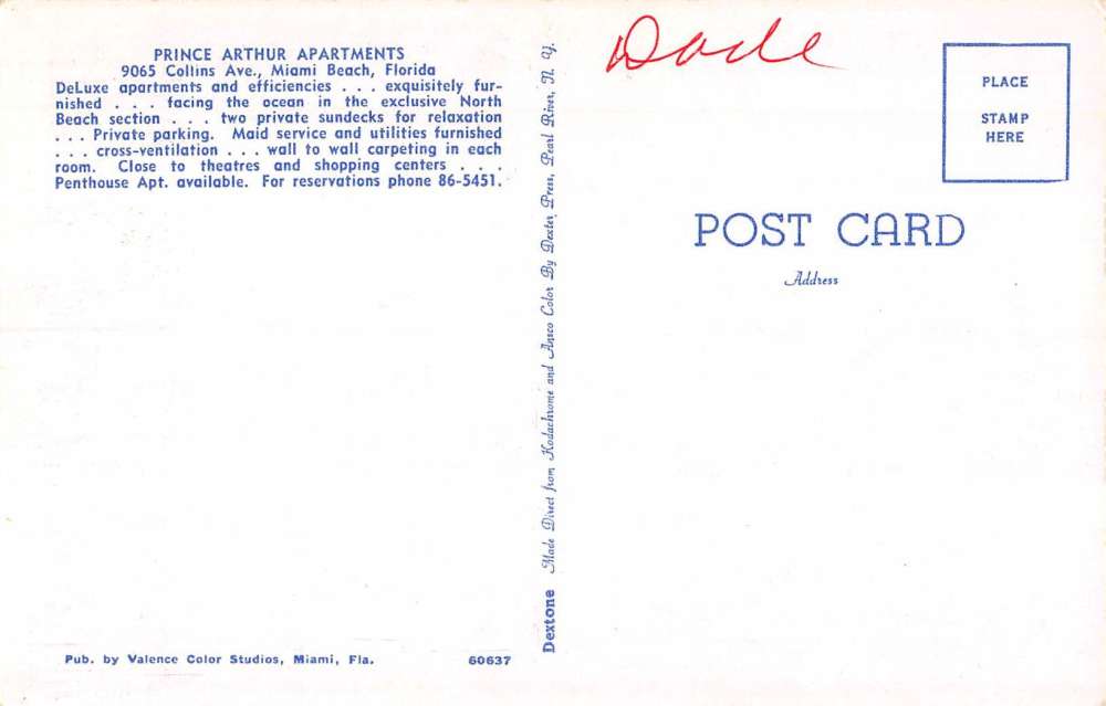 Miami Beach Florida view of Prince Arthur Apartments vintage pc ZD549634