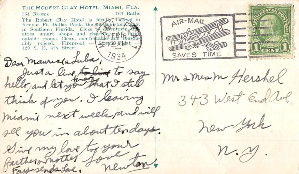 Miami Florida Robert Clay Hotel Street View Vintage Postcard K55132