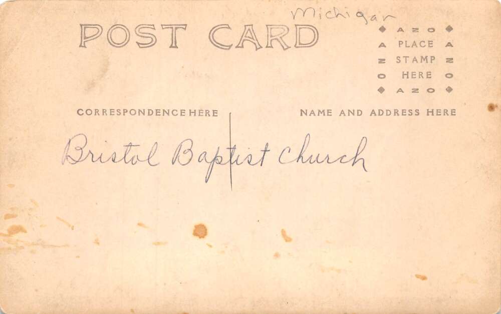 Michigan Bristol Baptist Church Real Photo Vintage Postcard AA71742