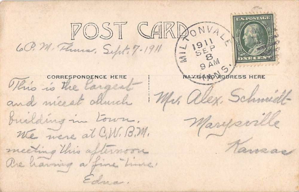 Miltonvale Kansas Christian Church Real Photo Antique Postcard K95754