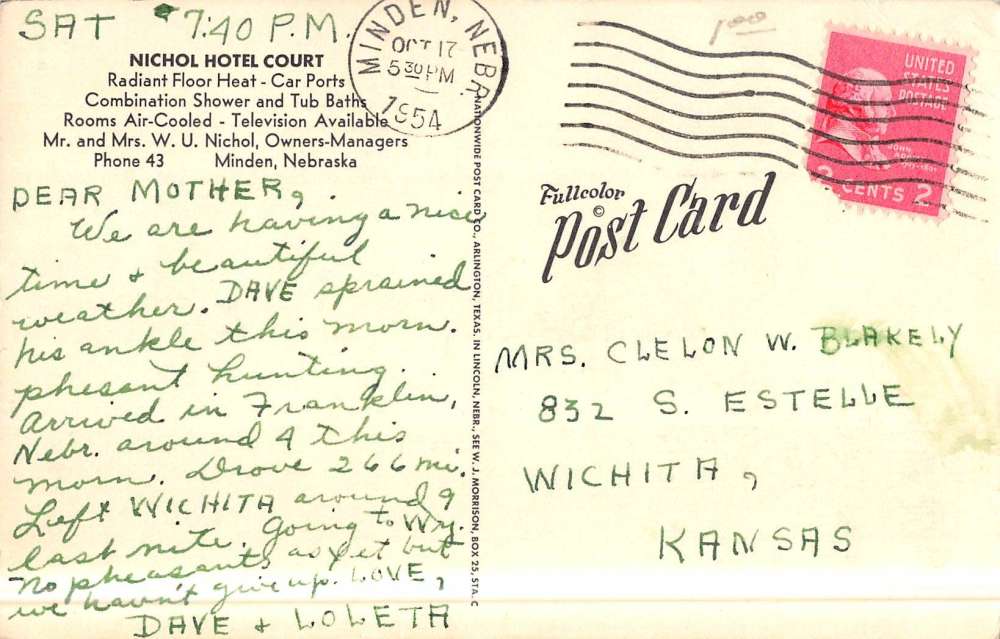 Minden Nebraska Nichol Hotel Court Street View Antique Postcard K45348