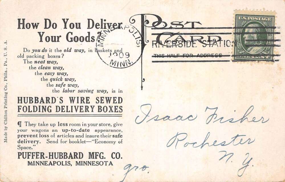 Minneapolis Minnesota Hubbards Wire Delivery Boxes Ad Vintage Postcard AA81554