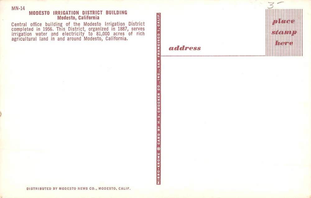 Modesto California Irrigation Building Street View Vintage Postcard K90220