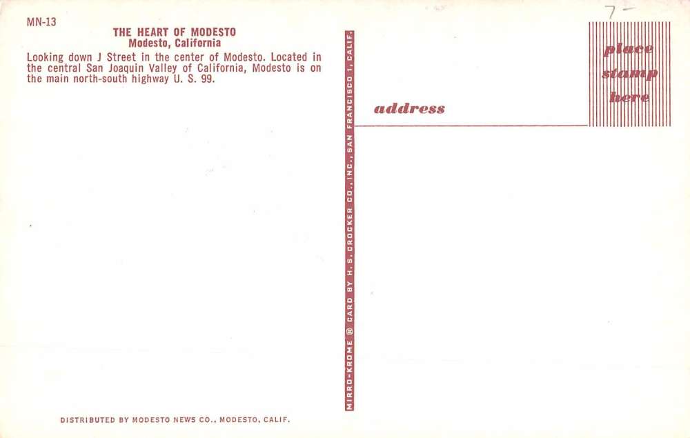 Modesto California Street Scene Greeting Vintage Postcard K90225