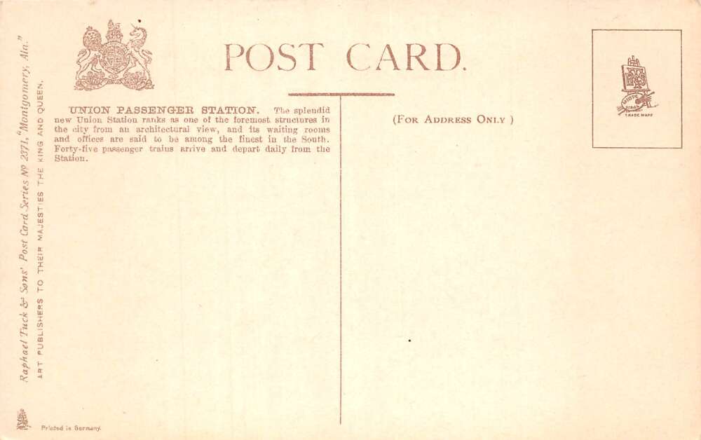 Montgomery Alabama Union Passenger Station, Tuck Published, Vintage PC U26718