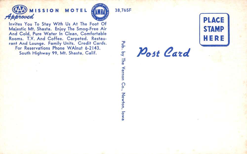 Mt Shasta California Mission Motel Vintage Postcard AA111327