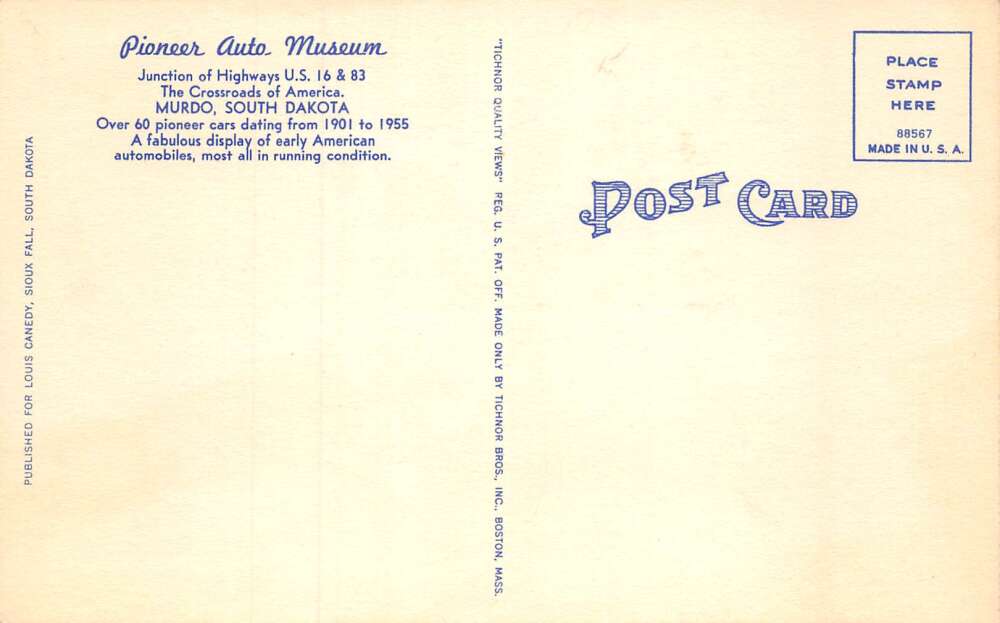 Murdo South Dakota Pioneer Auto Museum Linen Vintage Postcard AA72571